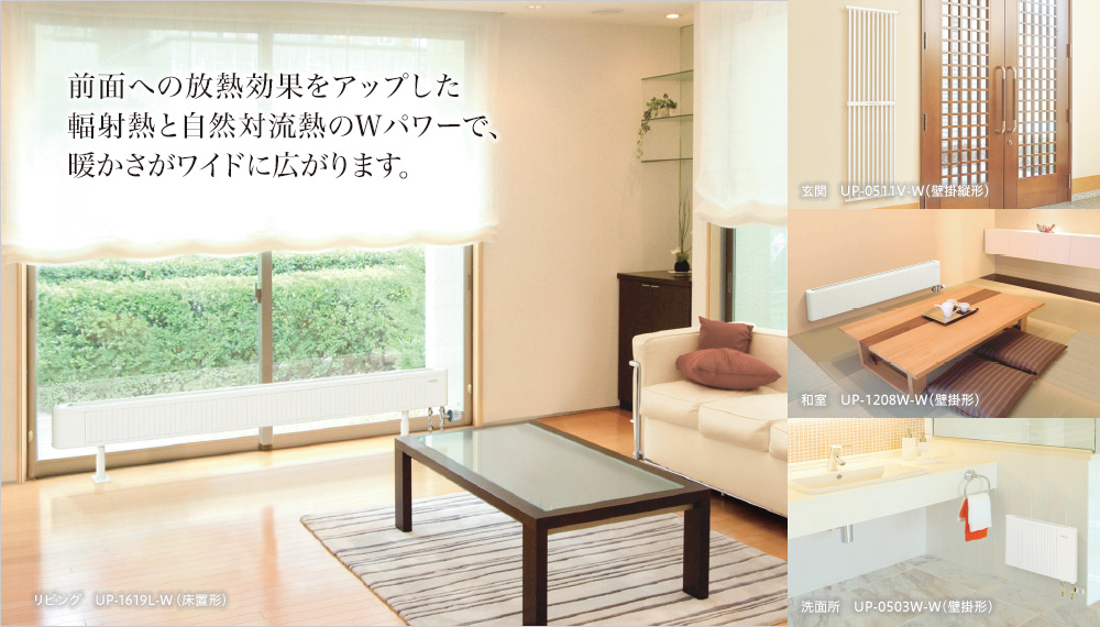 コロナは放熱器が豊富なので、輻射パネルのほかフロアマットや壁にも設置可能なパネルコンベクターなどからお好みで選ぶことができます。