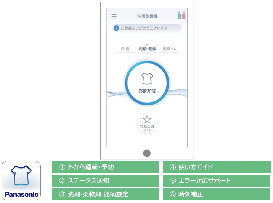 …「スマホで洗濯」アプリを使って、外出前に遠隔ボタンを押しておけば外出先から洗濯の仕上がり時間の設定や変更が可能になり、洗濯から乾燥まで出来るので予定にあわせてコースを選べる。